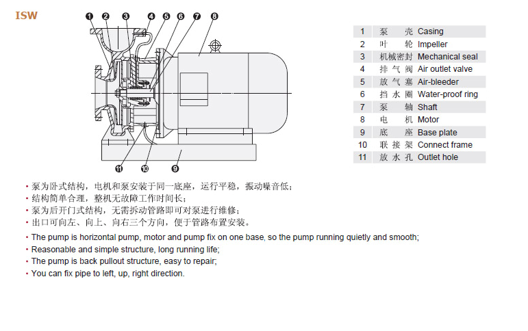 IHW型卧式离心泵根据IS型离心泵与立式泵的独特结构组合设计,并严格按照国际标准ISO2858和最新的国家管道离心泵标准JB/T53058-93进行设计制造的高效节能产品。该泵采用国内先进水力模型优化设计而成。同时根据使用温度、介质等不同在IHW型基础上派生出热水泵、高温泵、化工泵、油泵等,是目前国家标准定型推广产品。